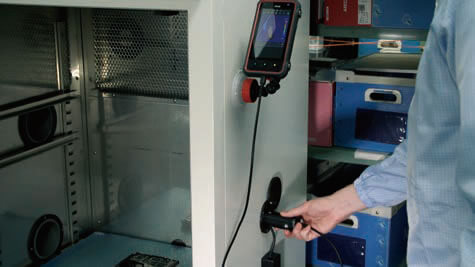 攝像頭配有LED燈,即使在黑暗的地方也可以識別物體并捕捉明亮的可見圖像。 可以使用觸摸面板執行遙控器,同時使用已取出的控制器檢查測量狀態。
